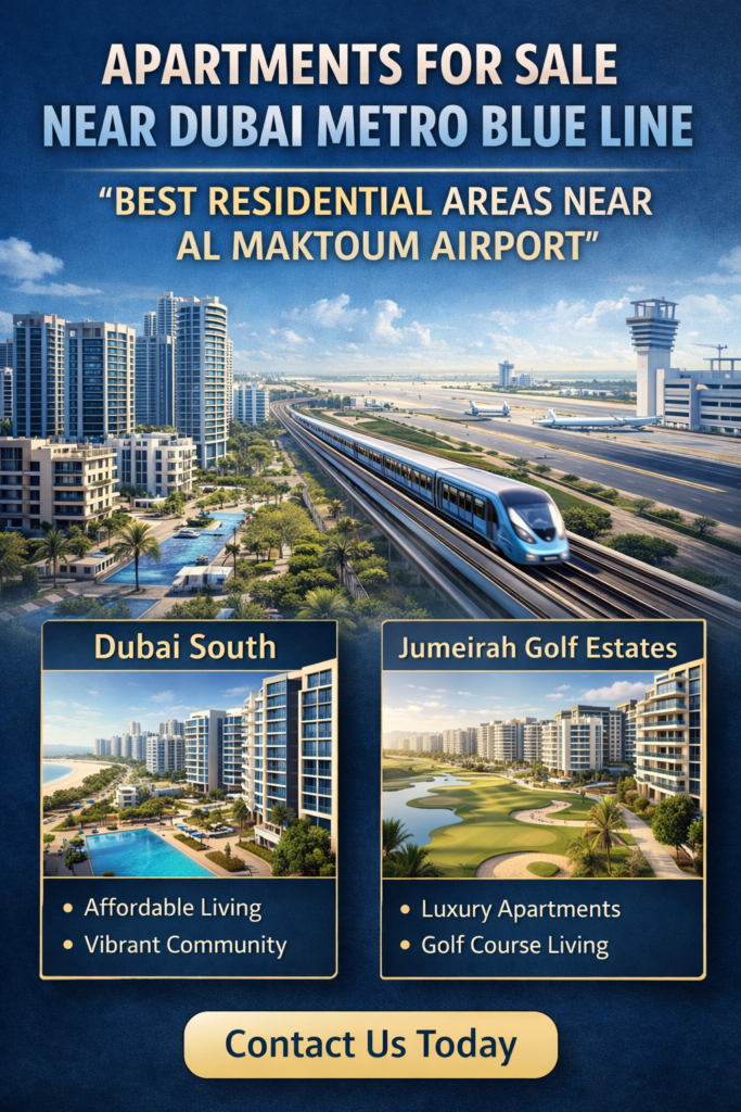 Apartments for sale near Dubai Metro Blue Line, Best residential areas near Al Maktoum Airport.