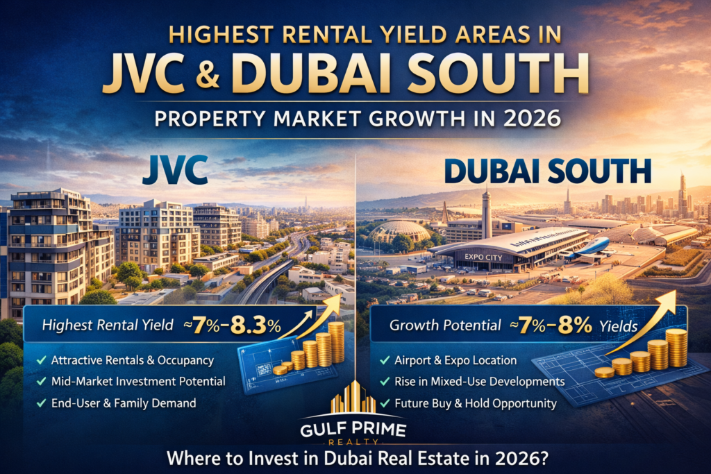 Highest rental yield areas in JVC 2026 , Dubai South property market growth